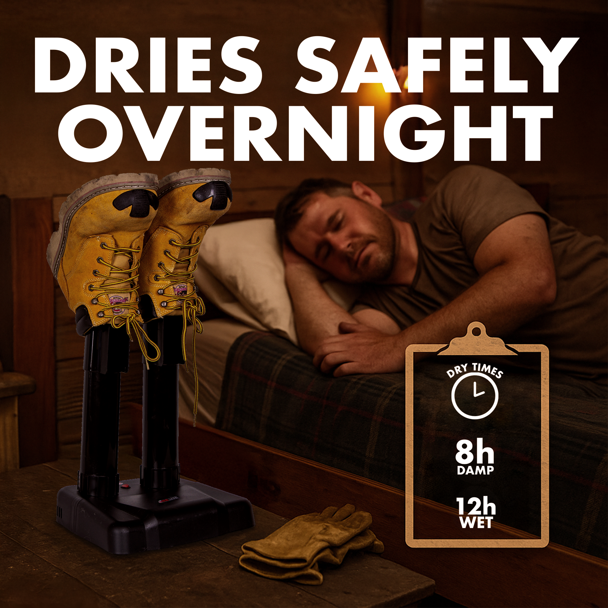 - COZY DRY EVERY MORNING - Step into warm, dry footwear every morning. Dries wet boots, shoes or gloves safely overnight with fanless thermal air that rises naturally without over-drying or shrinking.